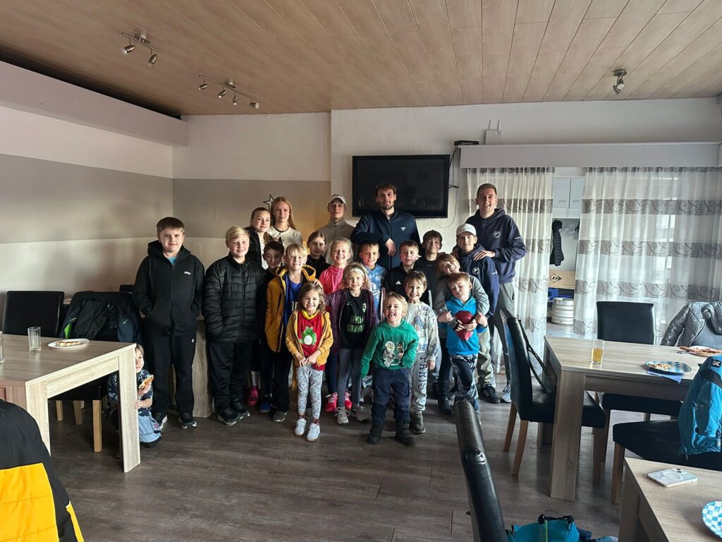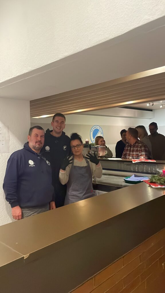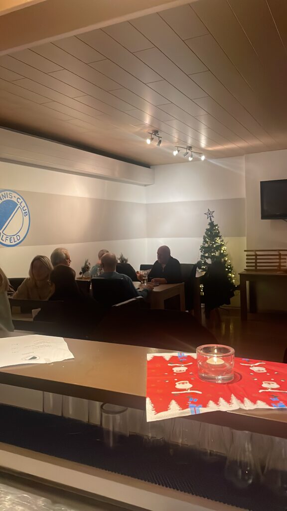 Die diesjährige (frühe) Weihnachtsfeier startete sportlich: In der Tennishalle wurden die Kinder und Jugendlichen von den Trainern Timo, Bjarne und Simon ordentlich gefordert und hatten viel Spaß. Danach ging es für die rund zwei Dutzend Teilnehmer ins Clubhaus, wo der Club Pizza und Getränke spendierte.